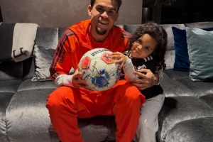 路易斯·迪亚斯带走了比赛用球,他晒出了自己和女儿一起捧着球的合照。