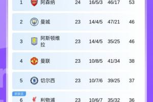 体育资讯2月1日讯 英超第24轮,阿森纳客场4-0战胜利兹联终结3轮不胜,先赛7分领跑,最新积分榜如下: