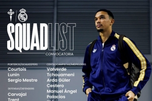 体育资讯3月6日讯 北京时间明天凌晨,皇马将在西甲第27轮比赛中客场对阵塞尔塔,皇马公布了此役的球员名单。姆巴佩、贝林厄姆、阿拉巴、米利唐、罗德里戈、塞巴略斯因伤缺席,卡马文加因牙齿问题缺席,赫伊森、马斯坦托诺、卡雷拉斯停赛缺席,阿森西奥回归。
