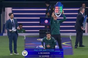 体育资讯03月12日讯 欧冠1/8决赛首回合,皇马对阵曼城。两队半场均做出换人,皇马用弗兰·加西亚换下费兰·门迪,曼城用赖因德斯换下萨维尼奥。