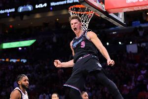 拉松目前发挥出色,半场出战16分39秒,投篮8中7,三分3中3,罚球2中1,砍下18分3篮板3助攻1盖帽。