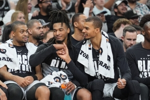 杨毅:马刺谁非卖品?卡斯尔,卡斯尔肯定非卖品。我觉得,年轻新秀可能还好。就是说其他这些人,其实都是咱们都是可以倒腾的。但是卡斯尔他的攻防两端特点以及他跟文班亚马他们之间的默契和两个人之间的这种情感什么的,我觉得他们俩会是作为球队的长久的核心。会内外线的核心共同存在,其他人都能倒腾。