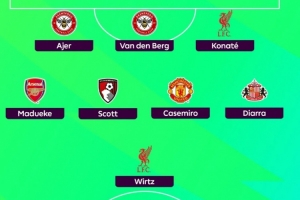 后卫:阿耶尔(布伦特福德)、范登贝尔赫(布伦特福德)、科纳特(利物浦)