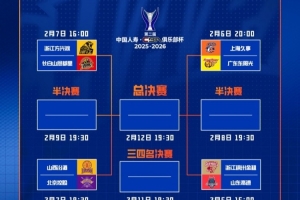 体育资讯2月5日讯 上海男篮官博晒出了第二届CBA俱乐部杯决赛阶段对阵图和赛事信息。