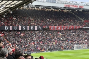 据记者Steven Railston报道,曼联球迷在老特拉福德球场悬挂写有“巴斯比宝贝”字样的横幅,纪念慕尼黑空难68周年。